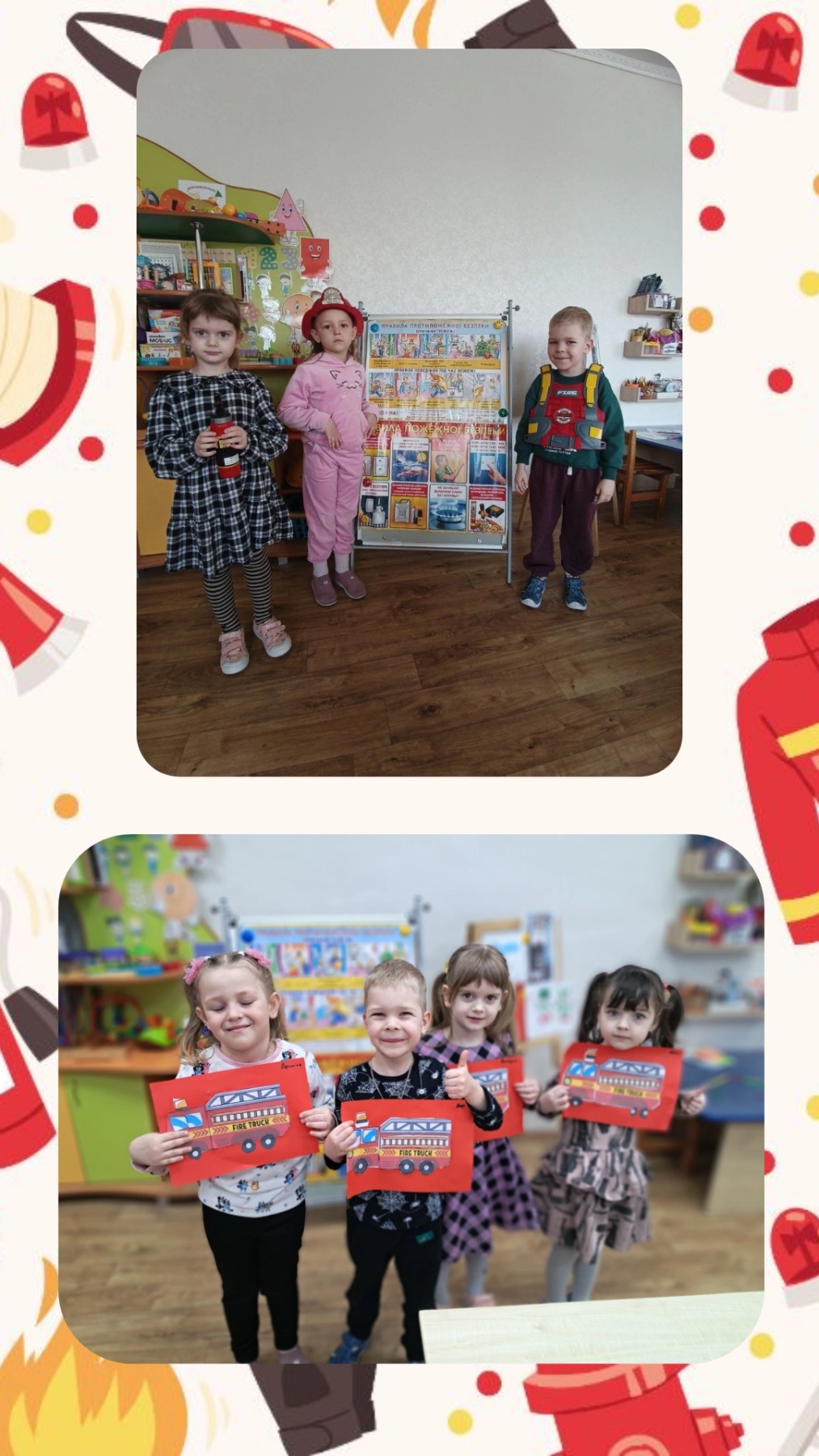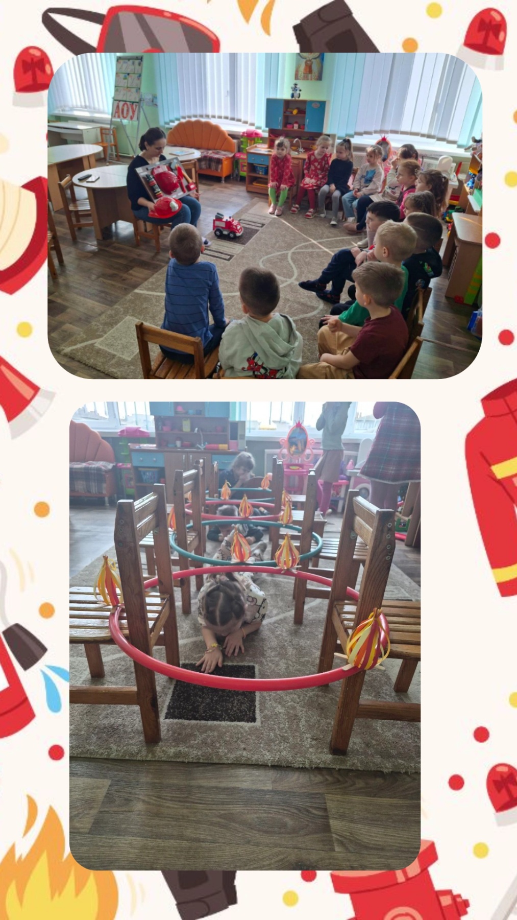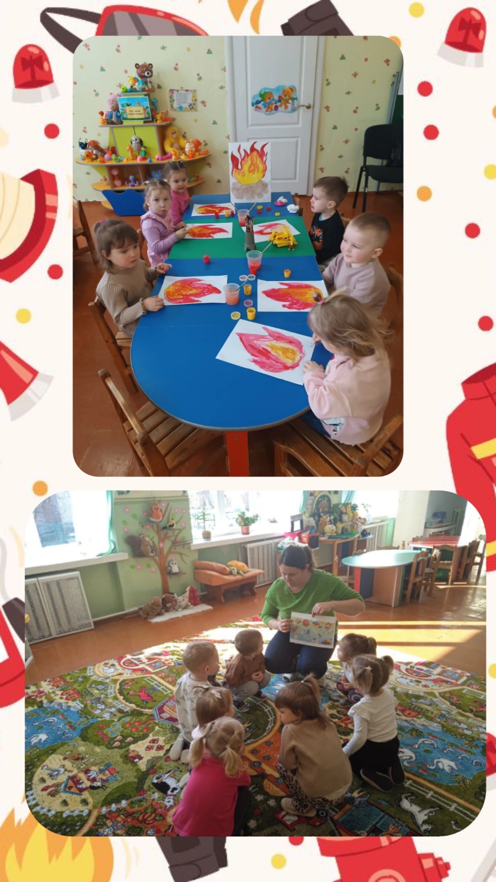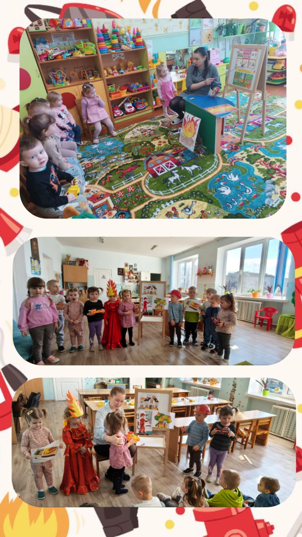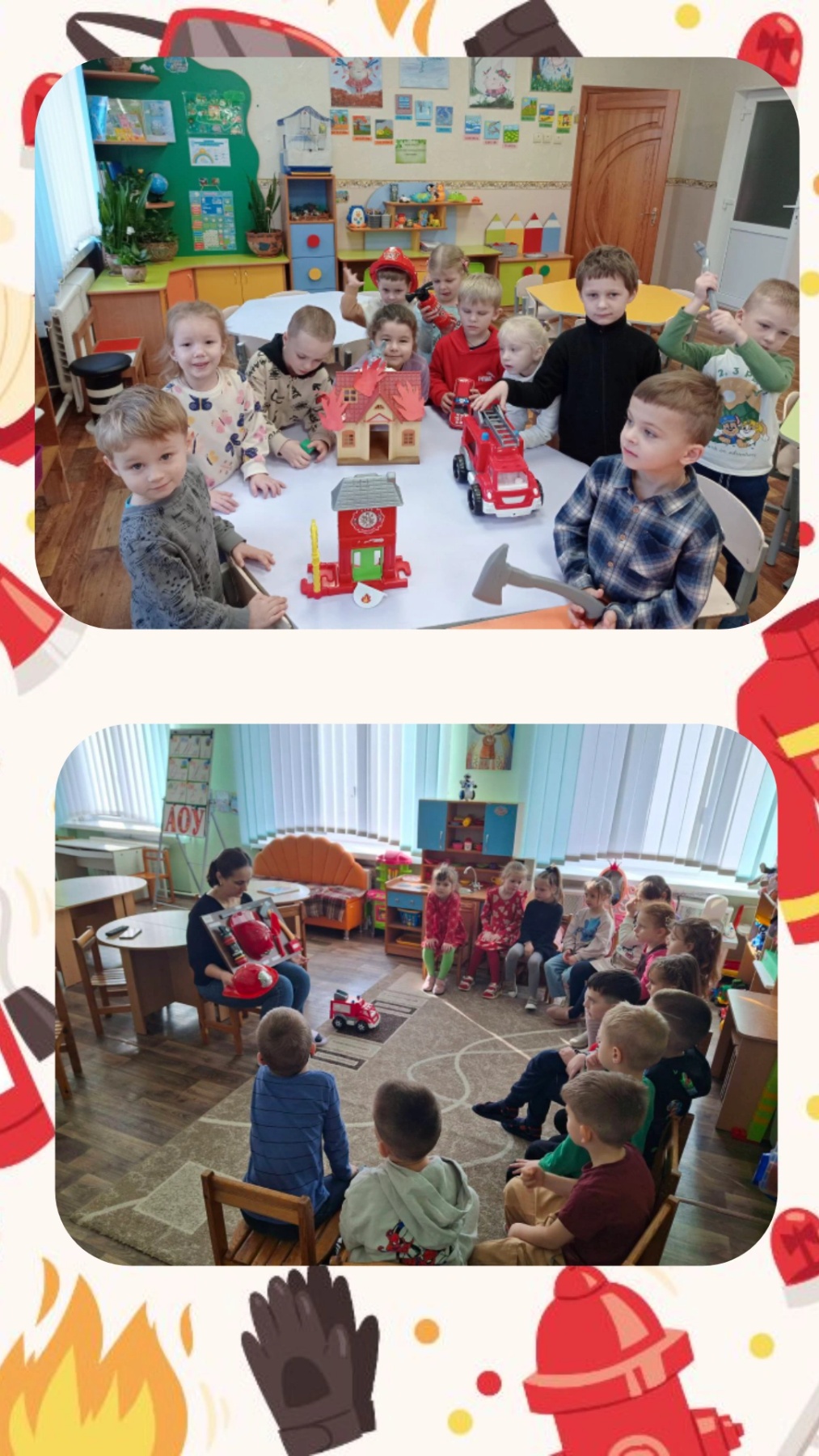 У всіх вікових групах був проведений комплекс заходів, спрямованих на навчання дітей правилам поводження з вогнем, запобігання дитячим пустощам, вивчення номера «101» та діям при пожежі, набуття навичок евакуації. Заходи включали рольові та сюжетно-рольові ігри, ігри-заняття, інтегровані заняття, бесіди, конкурс малюнків на пожежну тематику.