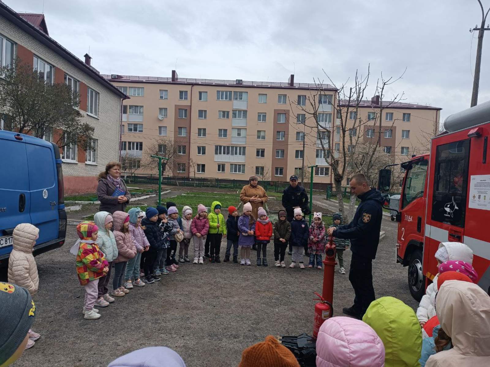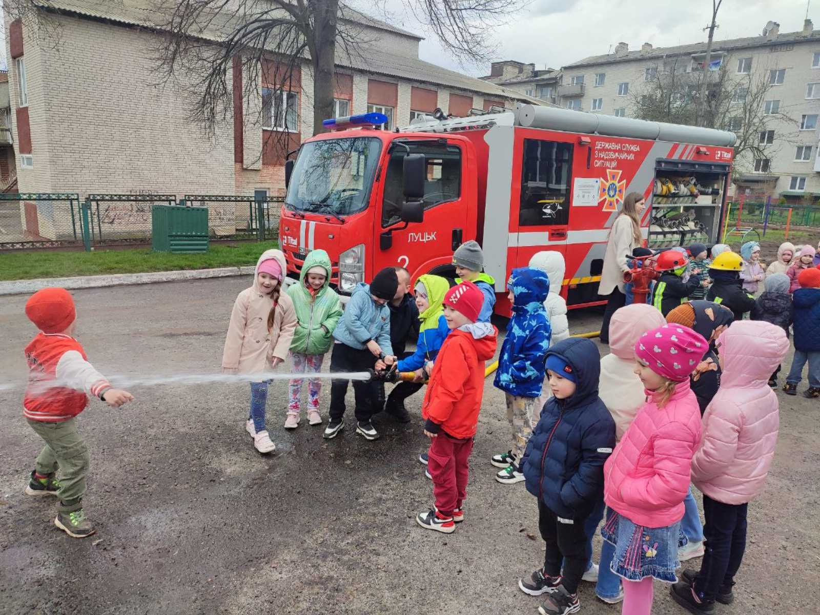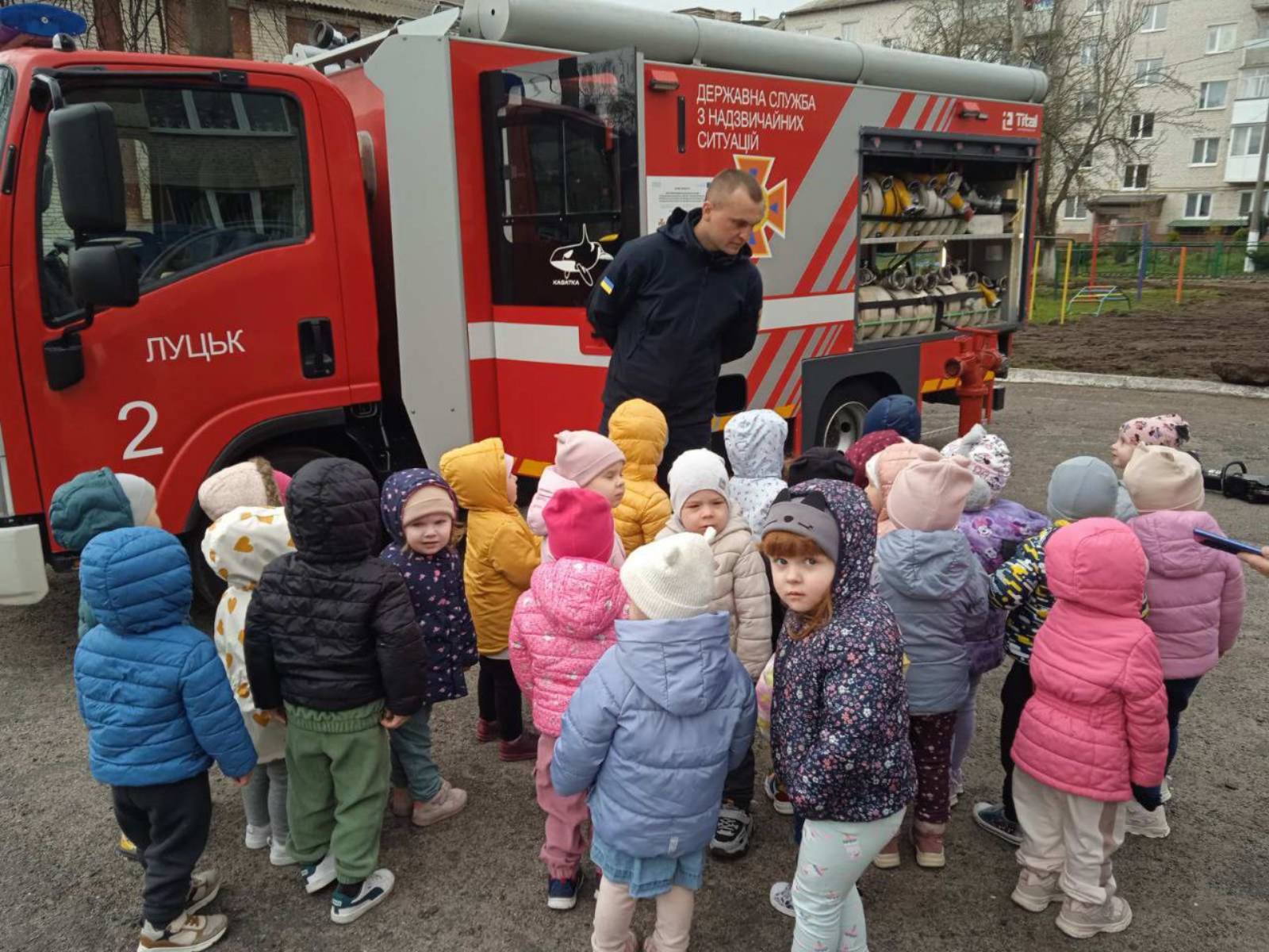 Незабутні враження діти отримали під час зустрічі з пожежникам ДСНС України у Волинській області. Пожежники ознайомили дошкільників із правилами поведінки під час пожежі, наочно показали інструменти та їх дію у разі необхідності використання:пожежна колонка, стовбур,рукав, кисневий апарат,гідравлічні інструменти, порошковий вогнегасник.