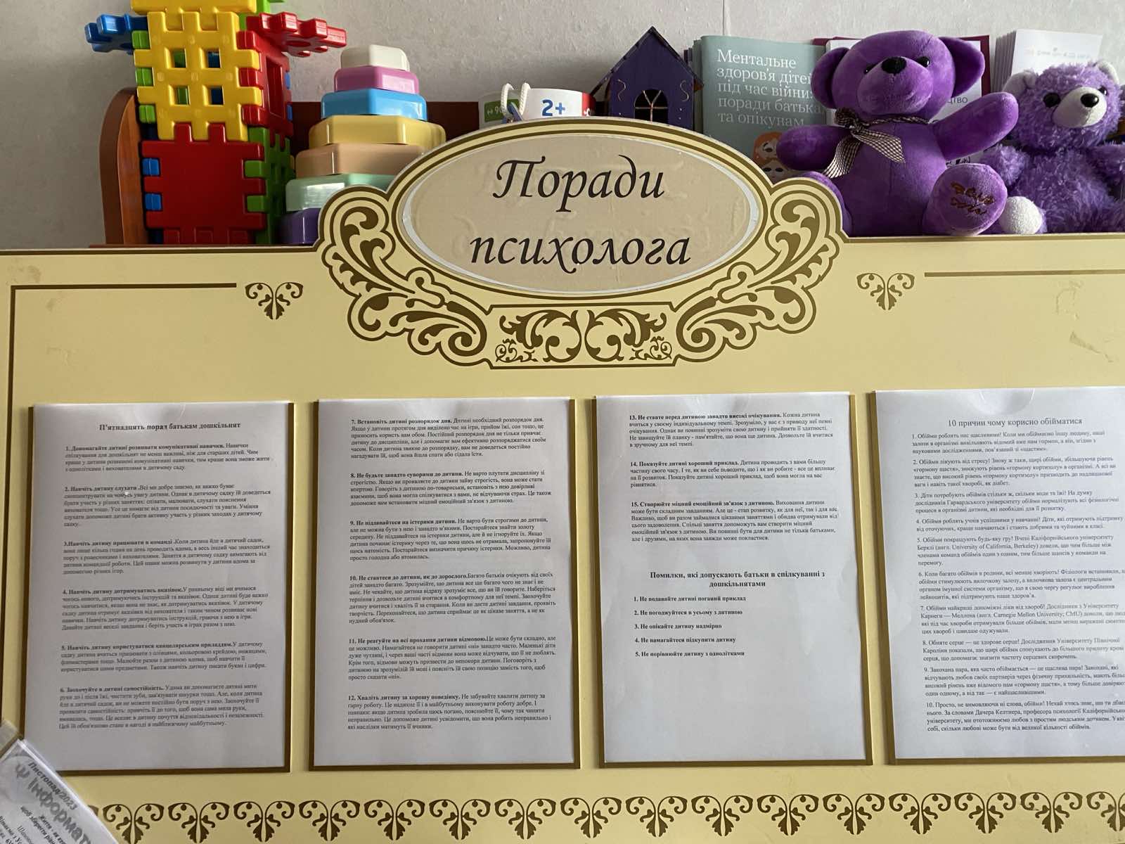 Інформаційний стенд «Поради психолога» поповнився інформацією для батьків про виховання їх дітей.